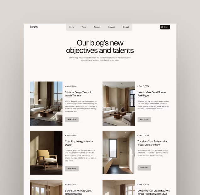 Presenting Luzen, The ultimate Interiors Webflow Template